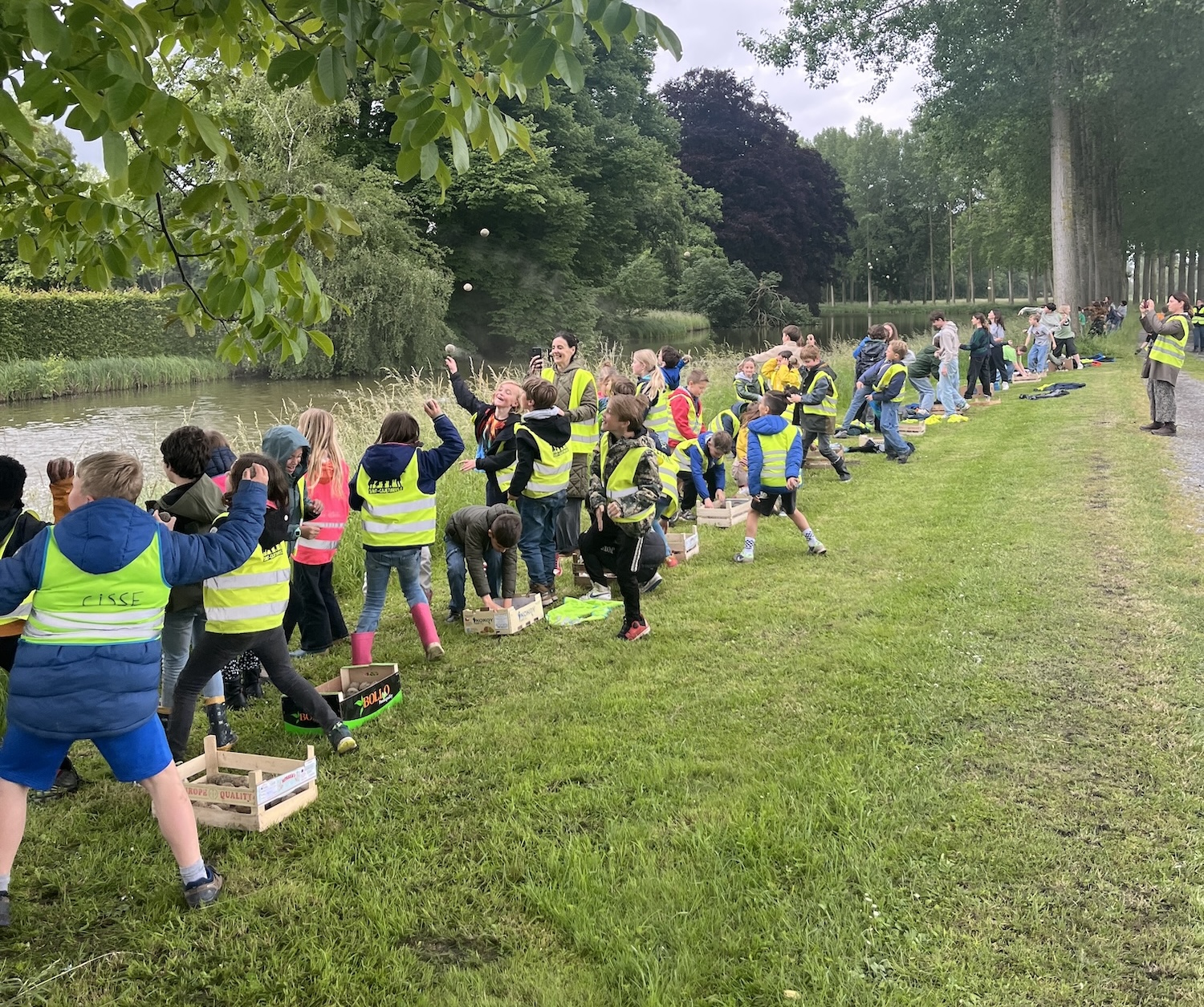 For the second year in a row, the local schools have helped us make our beautiful festival site cleaner and more resistant. We owe a big thank you to the children of Sint Cajetanusschool in Perk. This year, as many as 115 primary school children and 69 kindergarteners participated, making over 3051 pond balls. The target of 3000 was far exceeded. After rolling the balls, they were left in the school's attic for four to five weeks. With much spirit, they were thrown into the water of the castle pond, where they could begin their work.